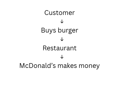 McDonald’s simplified food. It standardized kitchens. It trained people to follow repeatable processes. Then it franchised this system aggressively. More outlets meant more customers, stronger brand recall, and higher revenue.
