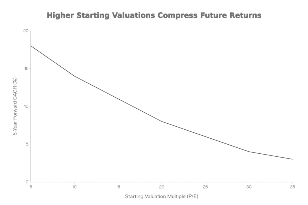 This is why clarity is expensive. As valuations rise ahead of certainty, future returns compress, not because growth disappears, but because perfection has already been prepaid.