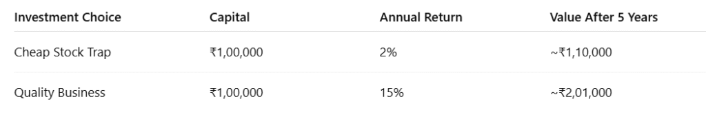 Cheap stocks don’t fail loudly. They fail quietly — through time, opportunity cost, and misplaced patience. Once you start judging businesses instead of prices, the trap loses its power.